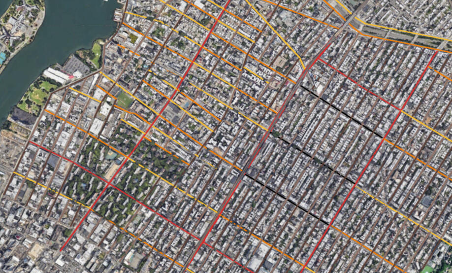 New York City is obviously a far larger city than Ghent, but the principle is the same, and the process of applying this logic to NYC begins at the neighborhood level. First, we select the streets on which through traffic will be permitted. That is to say, which will allow long distance travel (between neighborhoods or long distance within a single neighborhood.)